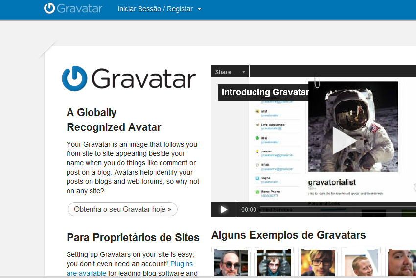Essa é a proposta do Gravatar (Globally Recognized Avatar), um serviço gratuito online que já é utilizado para identificar cada usuário de qualquer site baseado na plataforma WordPress. Ao registrar-se nesse serviço, você associa a um ou mais emails que você costuma utilizar um avatar – uma imagem de seu rosto, por exemplo. O serviço te permite registrar mais do que um email e uma imagem diferente para cada um deles, se você assim desejar. Mas o grande benefício do serviço é justamente a possibilidade de você utilizar um avatar apenas para todos os sites que se conectarem com o Gravatar.